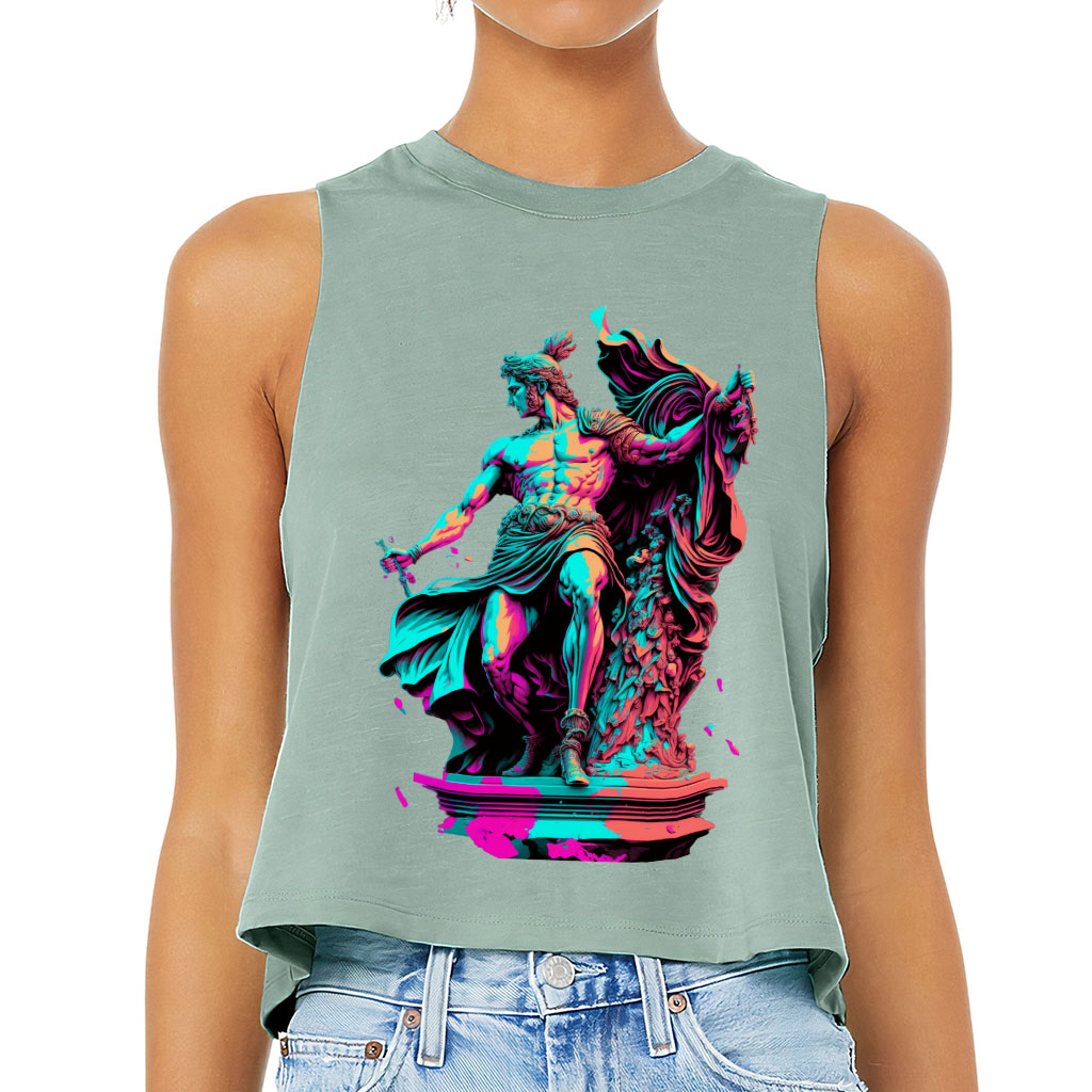 Show off your style with Greek God Women’s Tank! This cool and comfortable top is just what your wardrobe needs. Featuring a side-seamed relaxed fit that falls softly from the shoulders to a cropped finish, it’s perfect for flaunting your figure. Brass-colored raw edge arm holes and a racerback provide an extra touch of stylish detail to this charming tank. Wear Pop Art Tank Top out and about or keep it for relaxing days at home – the perfect way to stay one step ahead in style!
