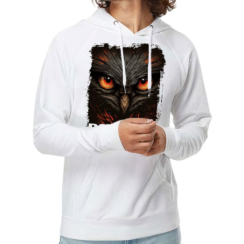 Introducing Cool Owl Hooded Sweatshirt – the perfect way to keep warm and look great all at once! This stylish men’s hoodie is brought to life with a loopback terry fabric that makes it soft and comfortable enough for daily wear or exercise. The unique double shoelace drawcords are held by antique silver metal tips, creating an eye-catching design that sets the piece apart from others. Last but not least, this stylish hoodie comes complete with twill neck tape and 1×1 ribbing at its cuffs and waistband. Owl Print Hoodie is the perfect addition to your wardrobe this season!