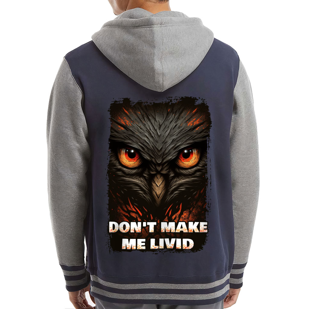 An essential closet staple, Angry Owl Varsity Hoodie is a go-to classic for hiking, training, or just kicking back. Pair it with your favorite shorts, athletic pants, jeans, or any pants you like.