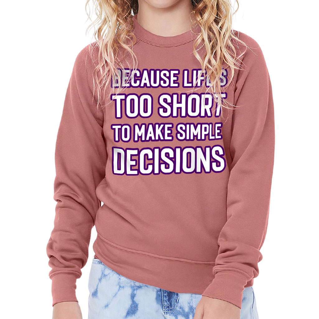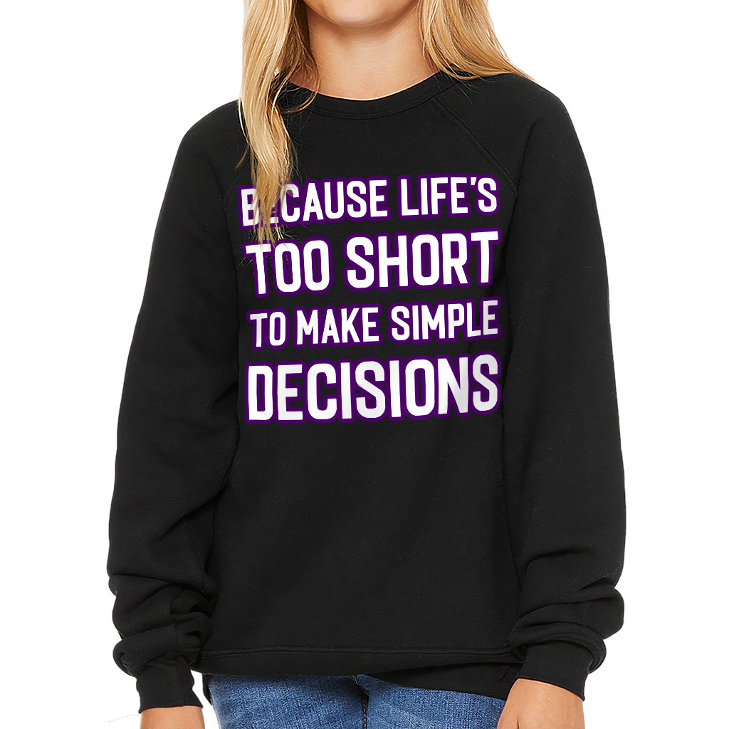 This remarkably soft pullover crewneck sweatshirt lends itself to daily wear and year-round layering. Because Life Is Too Short Kids’ Raglan Sweatshirt features ribbed cuffs and a waistband, a crew neck, and a fashion-forward fleece fabrication.