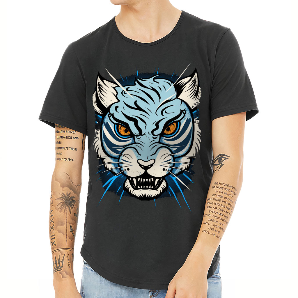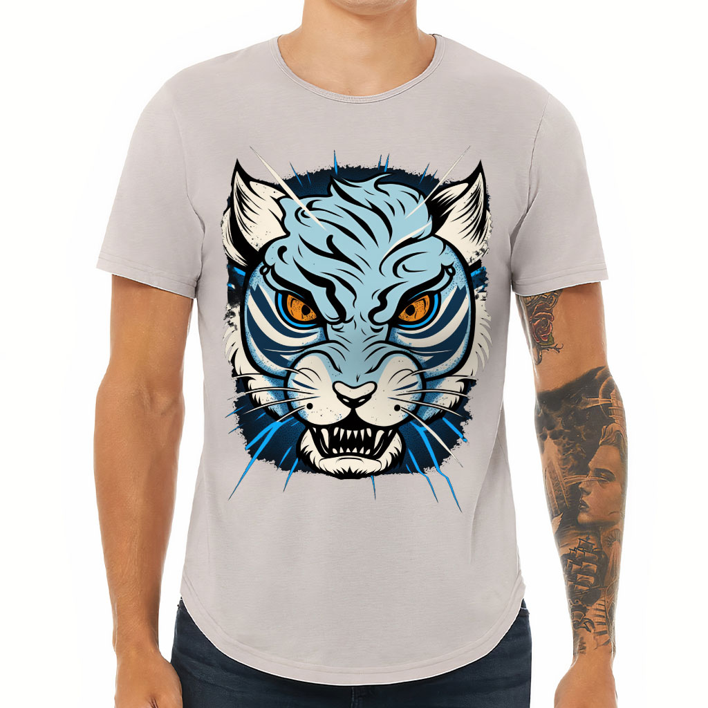 Blue Tiger Curved Hem Tee is no ordinary piece of clothing. Its 3/8 neck binding, subtle
