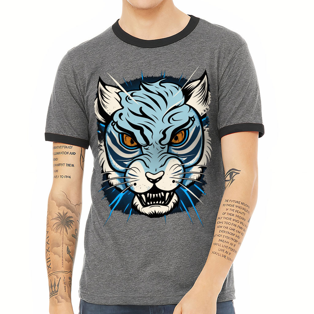 This trendy T-Shirt for men is made of a lightweight and soft cotton-poly blend, breathable and comfortable to wear. Blue Tiger Ringer T-Shirt will give you an excellent wearing experience all day.