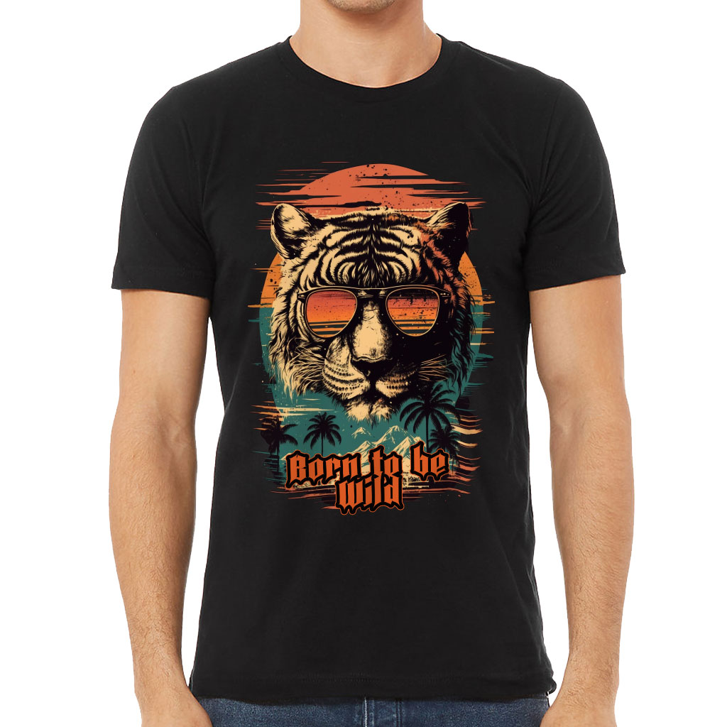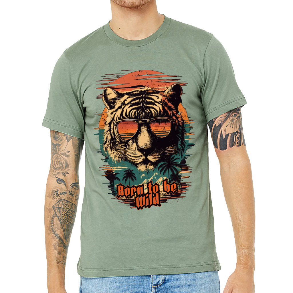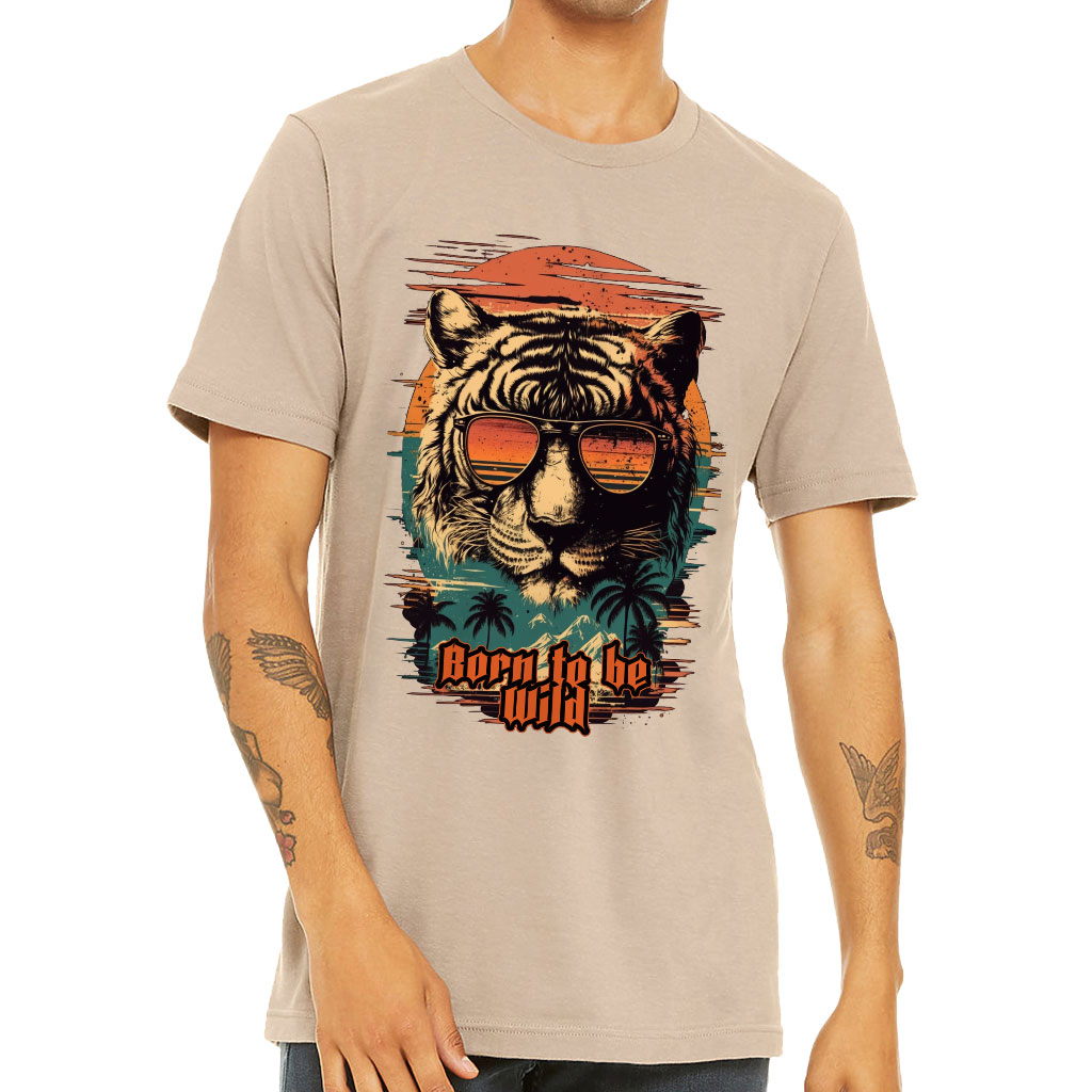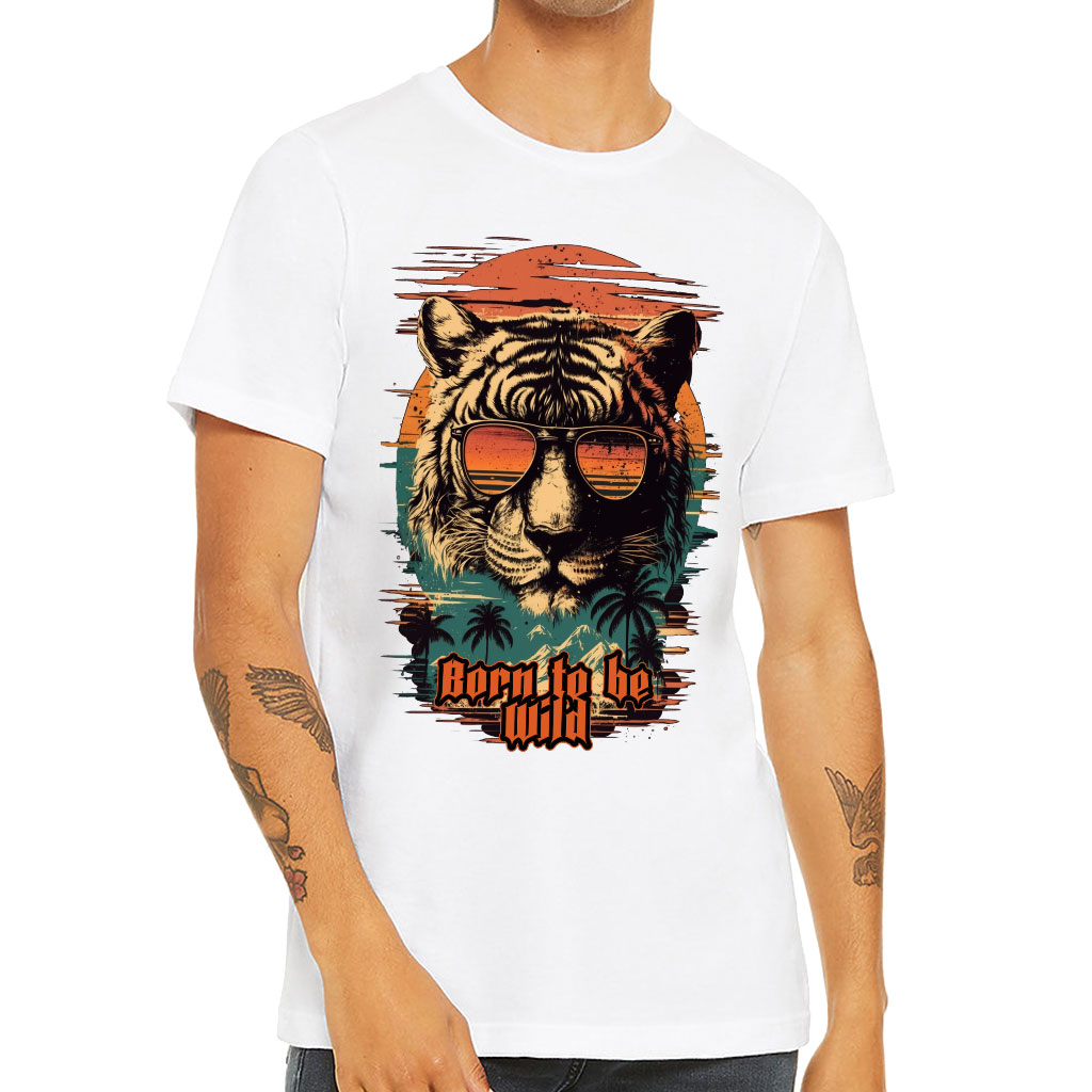 Born to Be Wild Short Sleeve T-Shirt – Tiger With Sunglasses T-Shirt – Retro Short Sleeve Tee