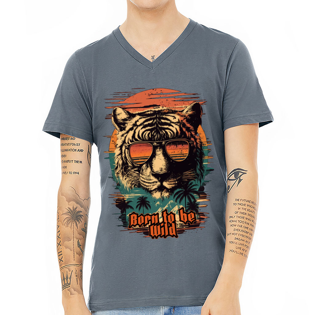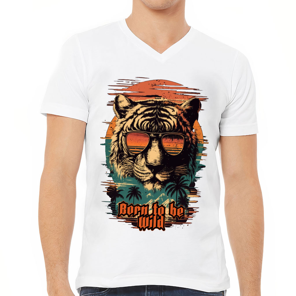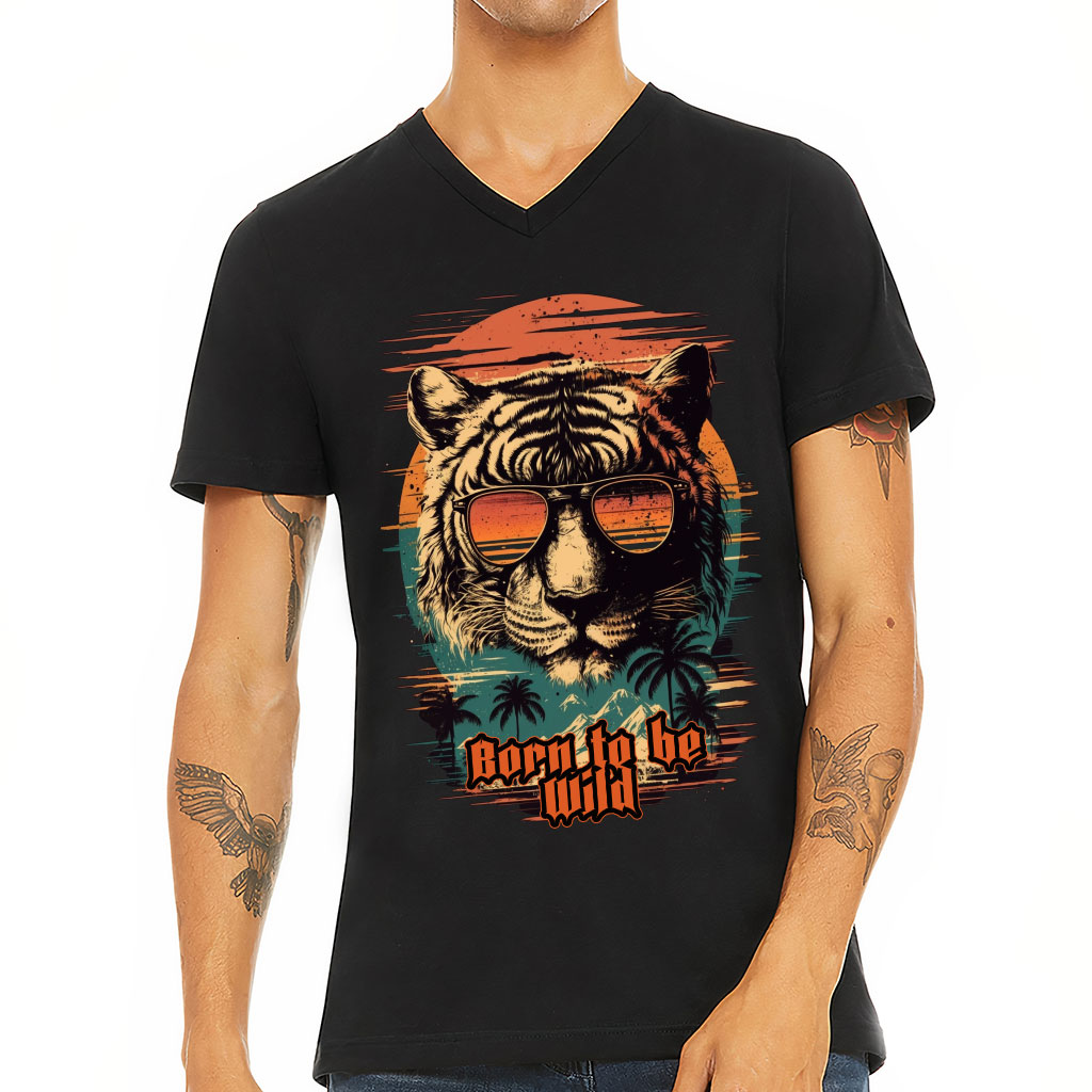 Looking for a relaxed and comfortable t-shirt? Look no further than Tiger With Sunglasses T-Shirt. Made from soft and lightweight fabric, Retro V-Neck Tee is perfect for everyday wear. And with a stylish v-neck design, it’s sure to turn heads too!