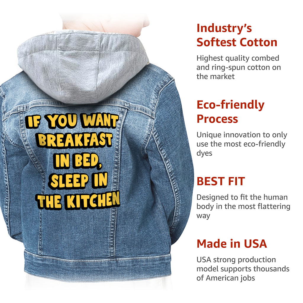 Breakfast in Bed Hooded Denim Jacket for Kids is made from premium material with comfort in mind. It is meant to be worn casually around the house, at a party, or on a night out with friends, etc. It is always trendy.