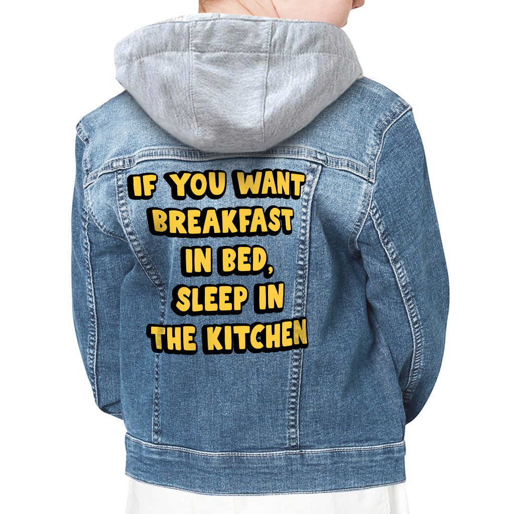 Breakfast in Bed Hooded Denim Jacket for Kids is made from premium material with comfort in mind. It is meant to be worn casually around the house, at a party, or on a night out with friends, etc. It is always trendy.