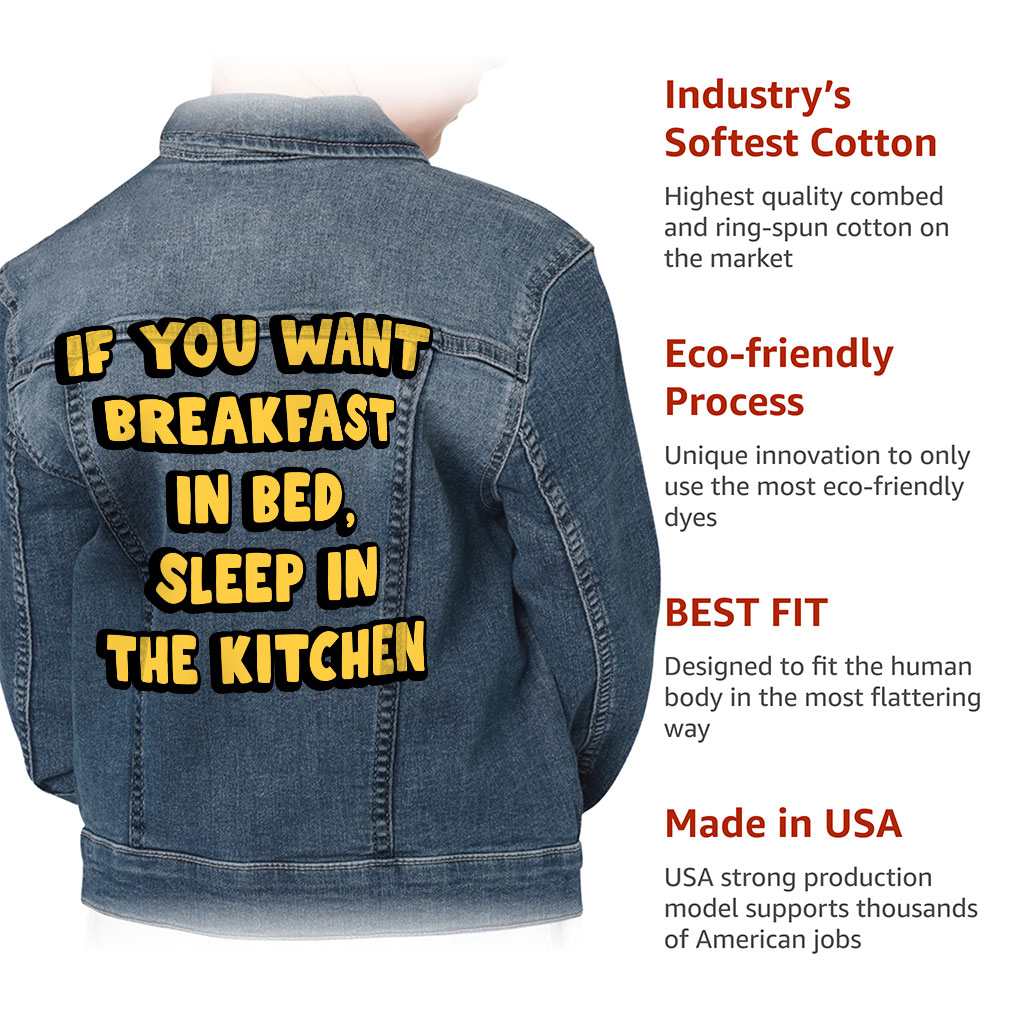 Trendy jean jacket for kids is designed with regular fitted style and is comfortable to wear. Breakfast in Bed Kids’ Denim Jacket is perfect for daily wear, party, holiday, travel, school, outdoor activities, sports, and birthdays, it is also a great gift for kids.