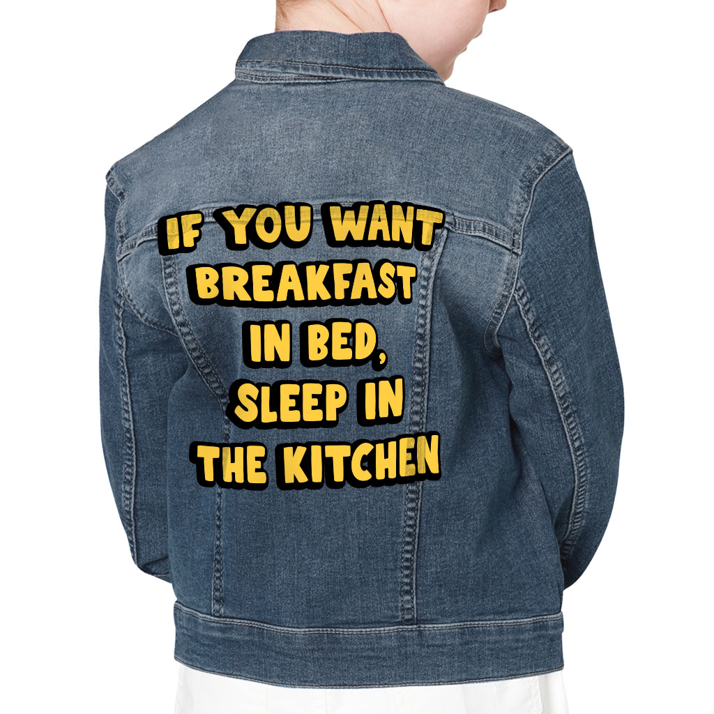 Trendy jean jacket for kids is designed with regular fitted style and is comfortable to wear. Breakfast in Bed Kids’ Denim Jacket is perfect for daily wear, party, holiday, travel, school, outdoor activities, sports, and birthdays, it is also a great gift for kids.