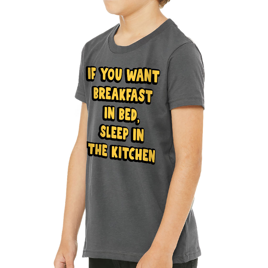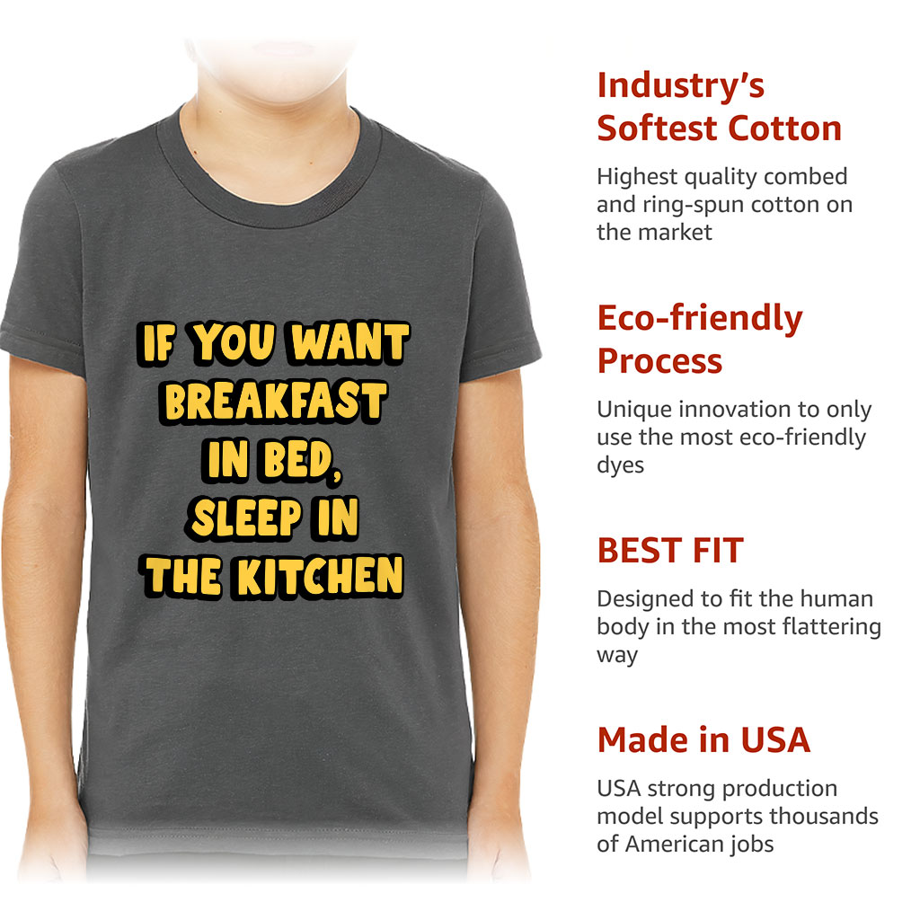 Breakfast in Bed Kids’ T-Shirt is no ordinary piece of clothing. Its crew neck and short