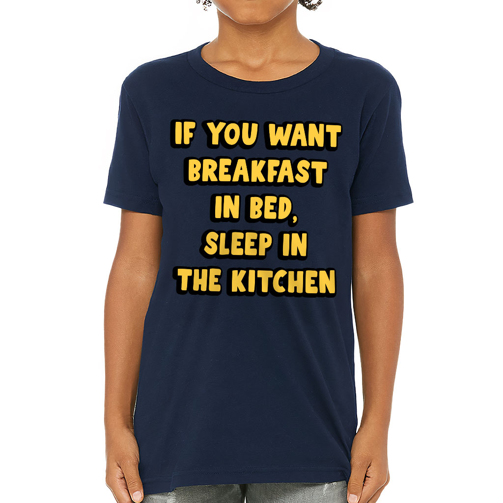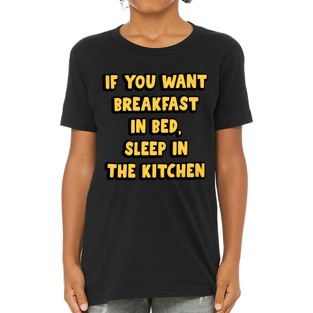 Breakfast in Bed Kids’ T-Shirt is no ordinary piece of clothing. Its crew neck and short