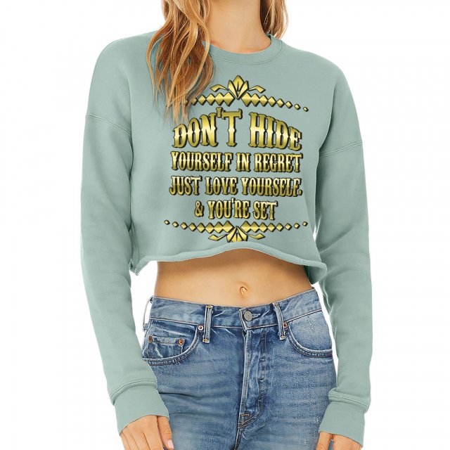 Just Love Yourself and You’re Set Cropped Sweatshirt – Motivational Women’s Sweatshirt – Life Quotes Crop Crew Sweatshirt