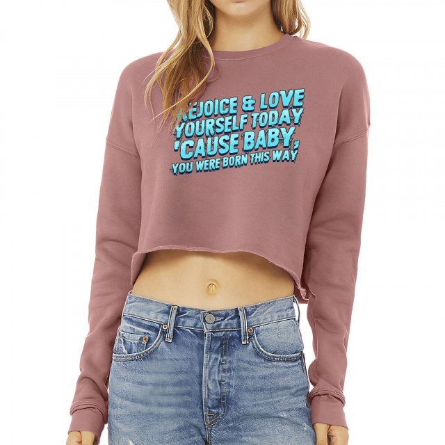 Born This Way Cropped Sweatshirt – Self Love Quotes Women’s Sweatshirt – Printed Crop Crew Sweatshirt