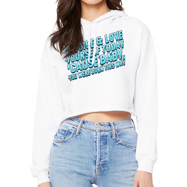 Love Yourself Today Women’s Cropped Hoodie – You Were Born This Way Cropped Hoodie – Quotes Hooded Sweatshirt