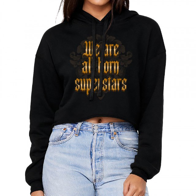 We Are All Born Superstars Women’s Cropped Hoodie – Motivational Cropped Hoodie – Self Love Hooded Sweatshirt