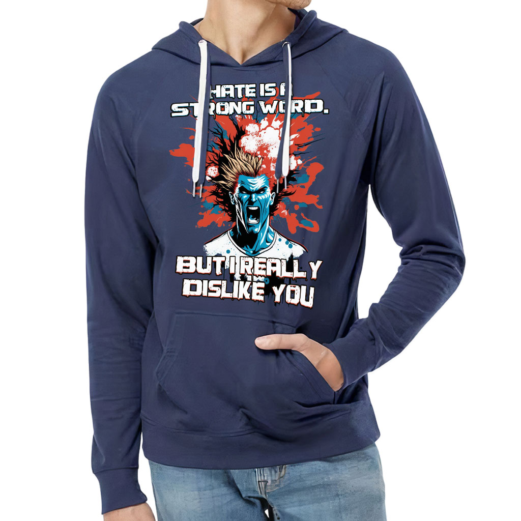 Introducing Hatered Hooded Sweatshirt – the perfect way to keep warm and look great all at once! This stylish men’s hoodie is brought to life with a loopback terry fabric that makes it soft and comfortable enough for daily wear or exercise. The unique double shoelace drawcords are held by antique silver metal tips, creating an eye-catching design that sets the piece apart from others. Last but not least, this stylish hoodie comes complete with twill neck tape and 1×1 ribbing at its cuffs and waistband. Angry Quotes Hoodie is the perfect addition to your wardrobe this season!