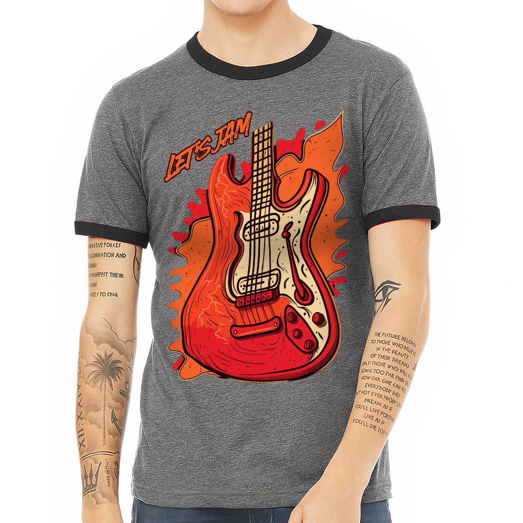 This trendy T-Shirt for men is made of a lightweight and soft cotton-poly blend, breathable and comfortable to wear. Electric Guitar Ringer T-Shirt will give you an excellent wearing experience all day.