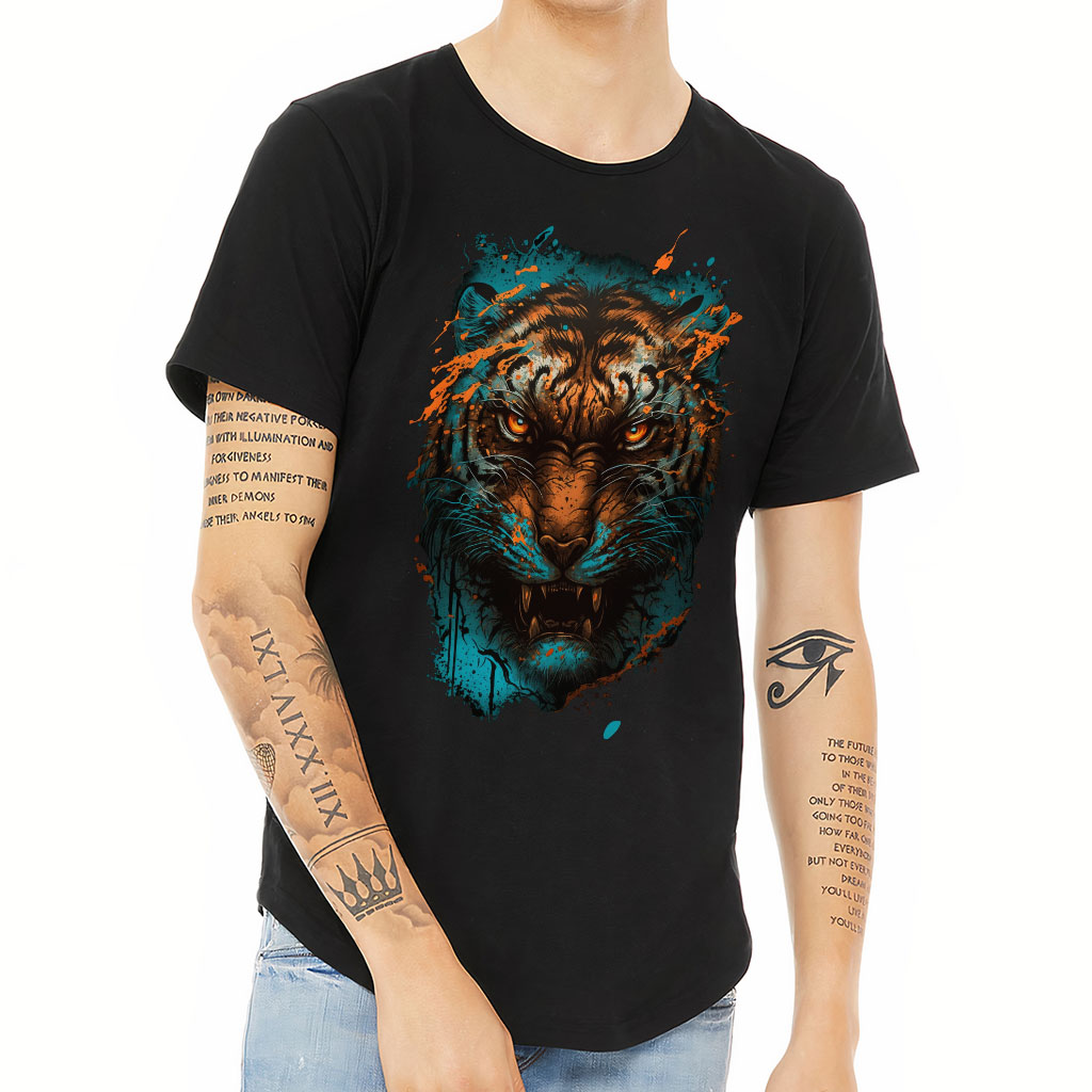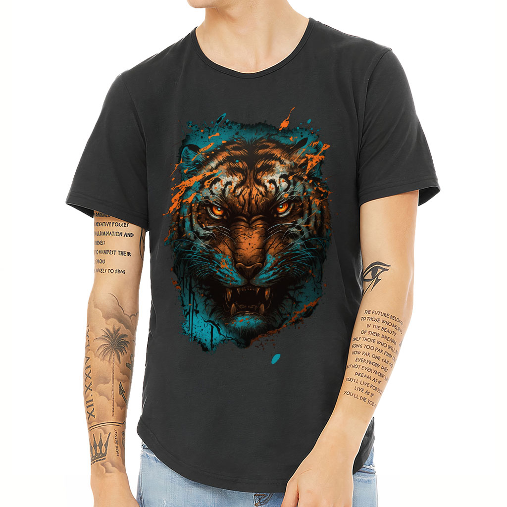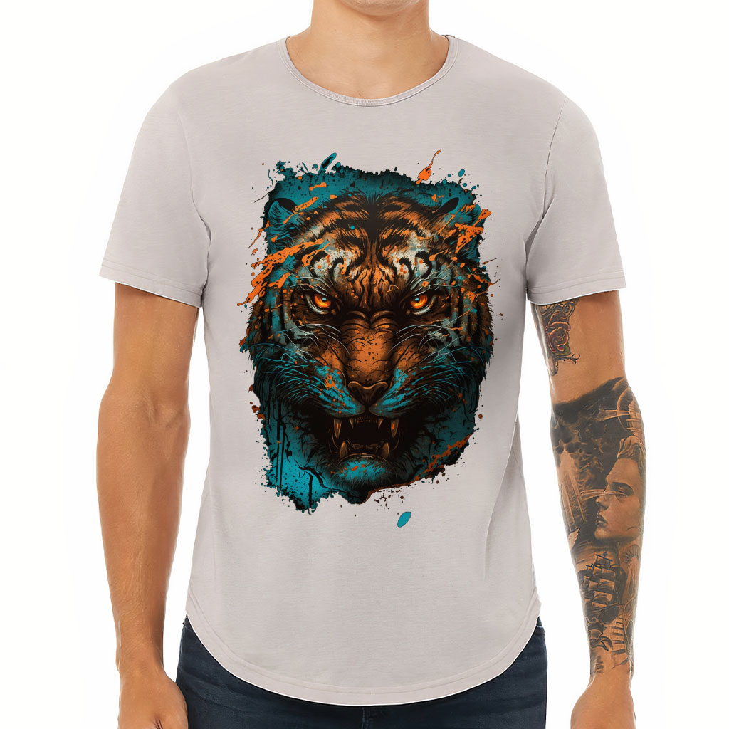 day? Check out Cool Tiger T-Shirt! Tiger Art Curved Hem Tee is perfect for men who want to look