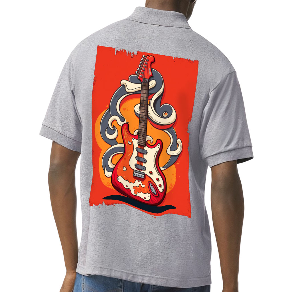 Are you ready for a sporty upgrade to your wardrobe? Look no further than Guitar Graphic T-Shirt! This classic-fit t-shirt is the perfect combination of both style and comfort. The contoured welt collar and cuffs give you a sleek look that’s perfect for any occasion. Plus, the reinforced bottom box and dyed-to-match buttons add an extra flair of sophistication. And on top of all that, you can rest assured your jersey t-shirt will last with its double-needle bottom hem; this T-Shirt is built to stand the test of time! So don’t hesitate — put some stylish flair in your closet today with Artwork Sport Tee.