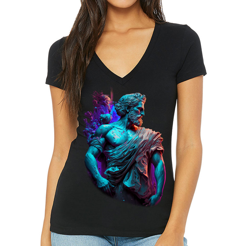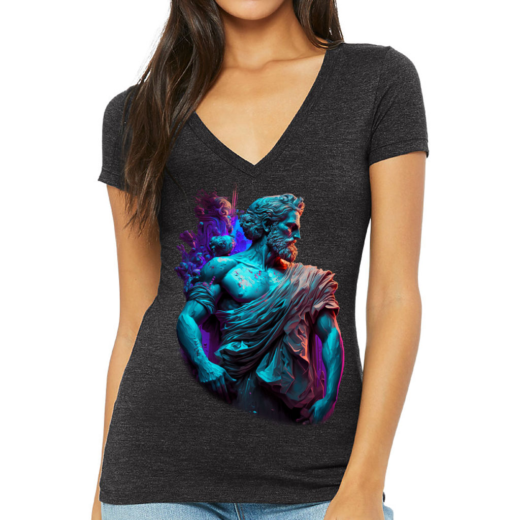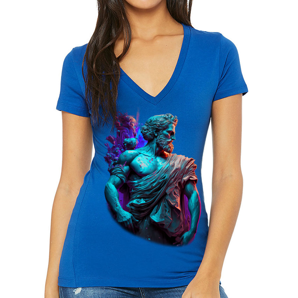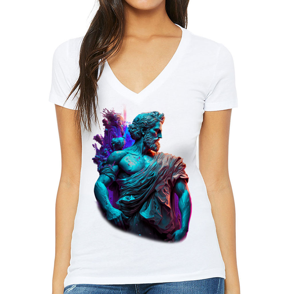 Greek Art Women’s V-Neck T-Shirt – Greek God Statue V-Neck Tee – Colorful T-Shirt