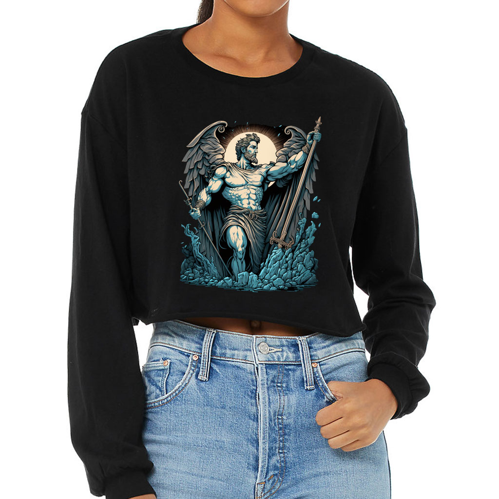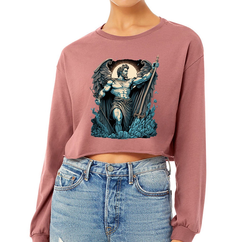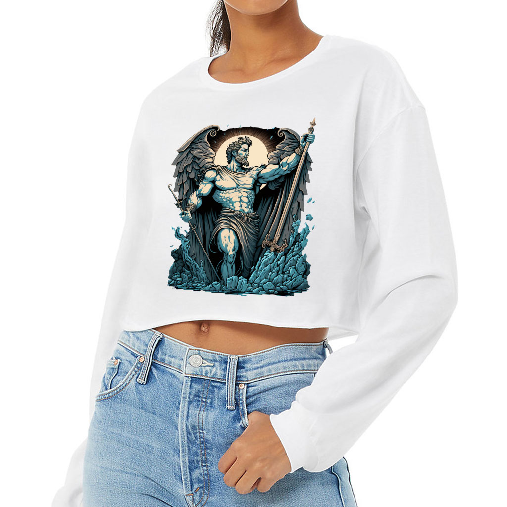 Greek God Statue Cropped Long Sleeve T-Shirt – Zeus Women’s T-Shirt – Art Print Long Sleeve Tee