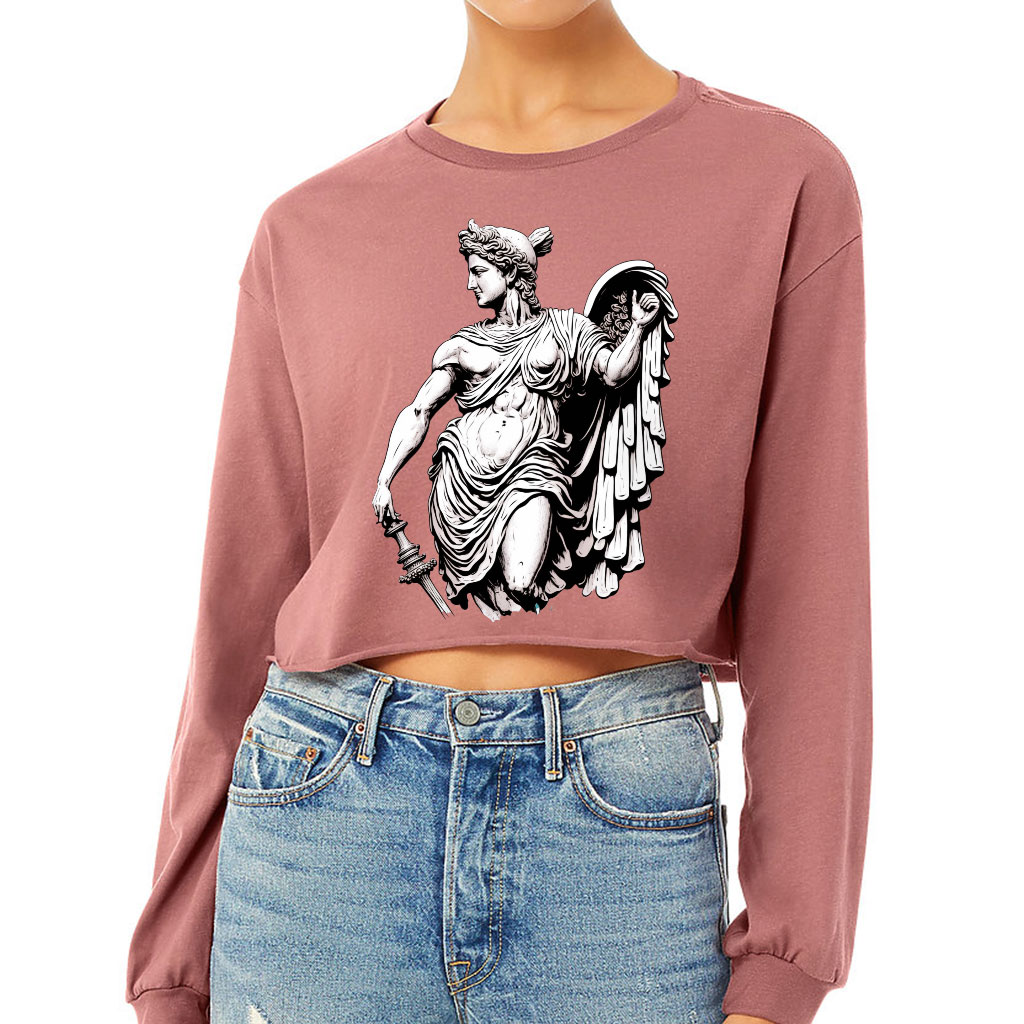Greek Goddess Cropped Long Sleeve T-Shirt