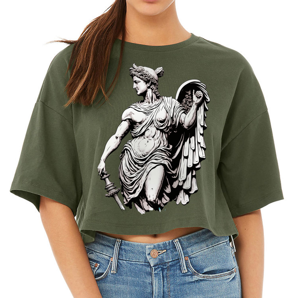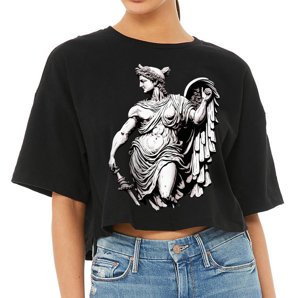 Greek Goddess Women’s Crop Tee Shirt is sure to make you stand out in a crowd! Match this shirt with shorts, jeans, leggings, sweatpants or skirts. Suitable for spring, summer, fall, winter, and all year.