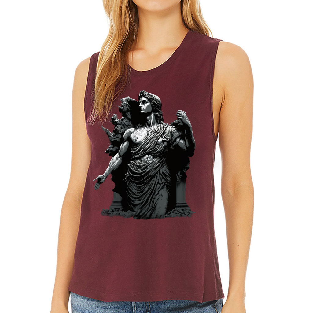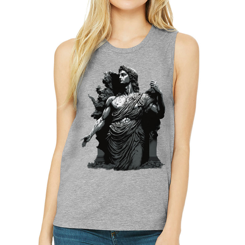 Greek Mythology Women’s Muscle Tank is made from high-quality materials. The soft fabric fits perfectly to the body and suits any type of figure. Our products will make your everyday comfortable, as well as add charm to your image and emphasize your style.