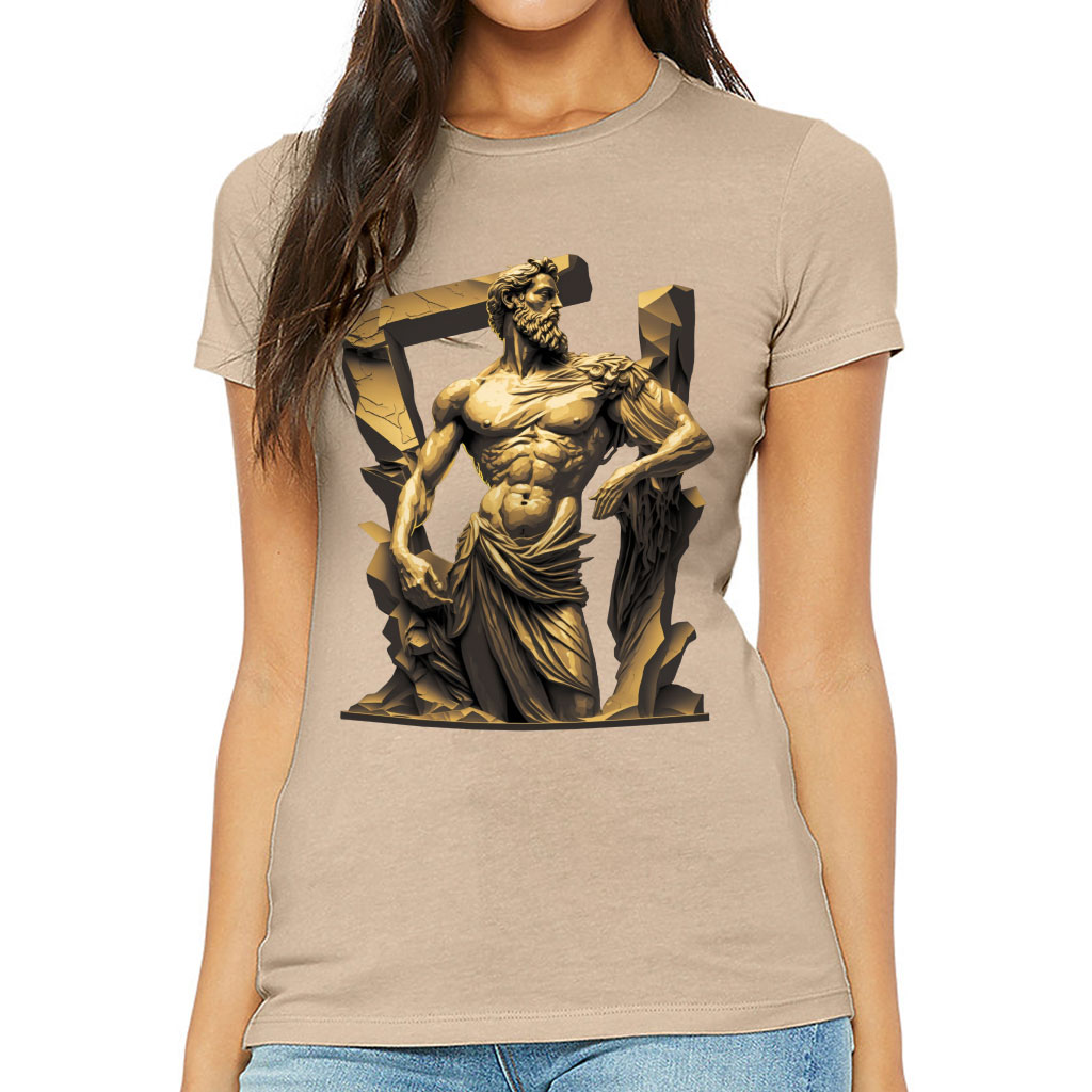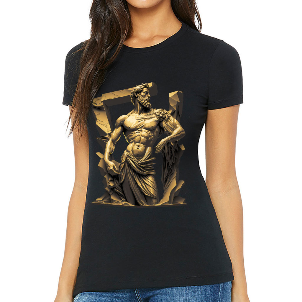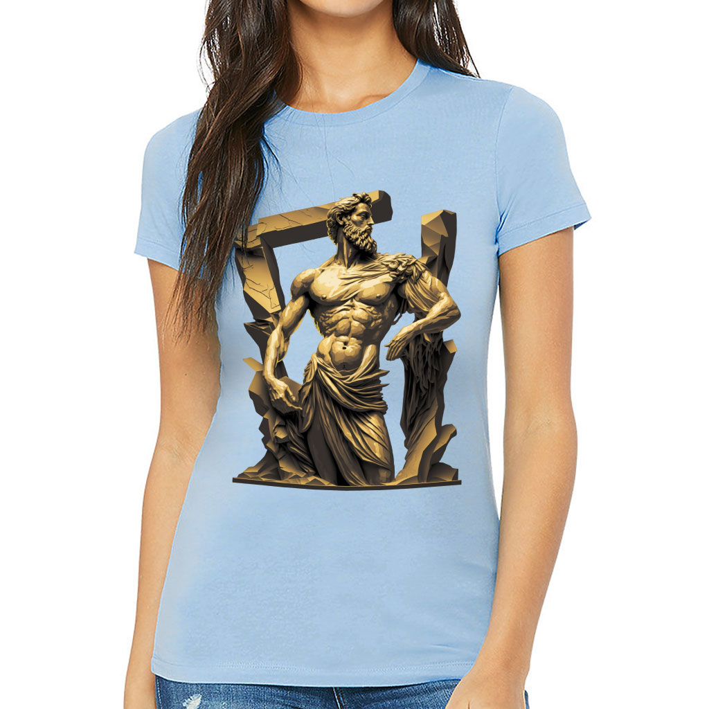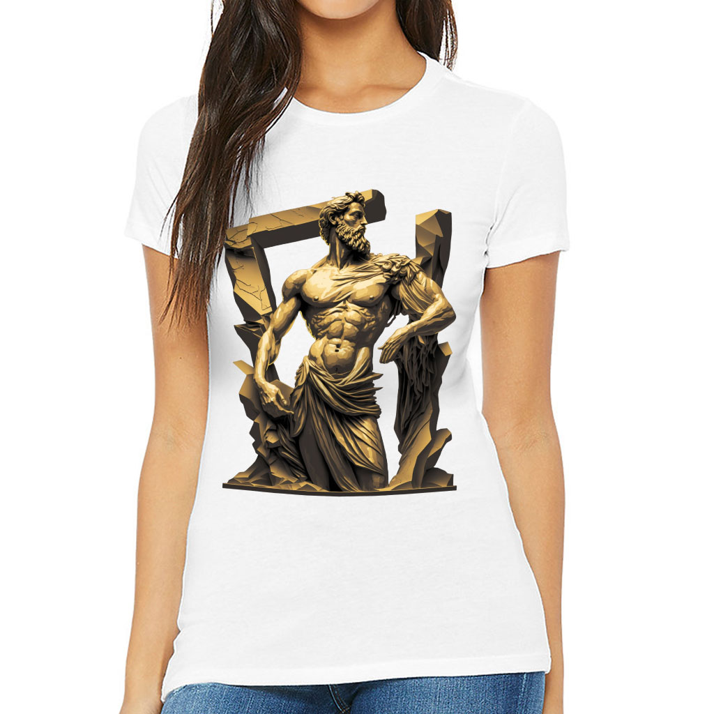 The highest quality of our products guarantees you a long service life of the product. You will wear God Statue Women’s T-Shirt for many years and it will not fade or stretch.