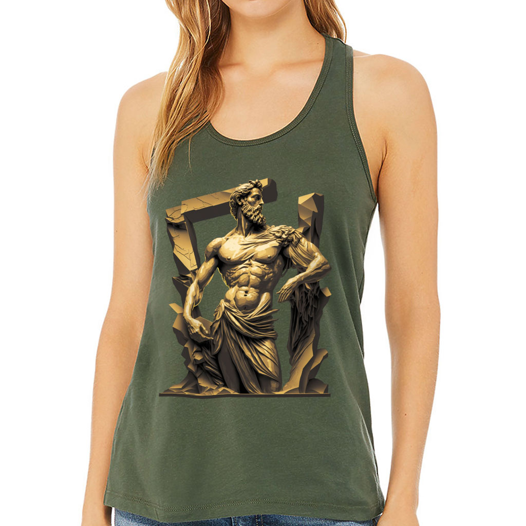 God Statue Tank Top has quality fabric and vibrant colors. It is ideal for sports. You will not only be comfortable moving but also pleased to know that you look stylish even in such a situation.