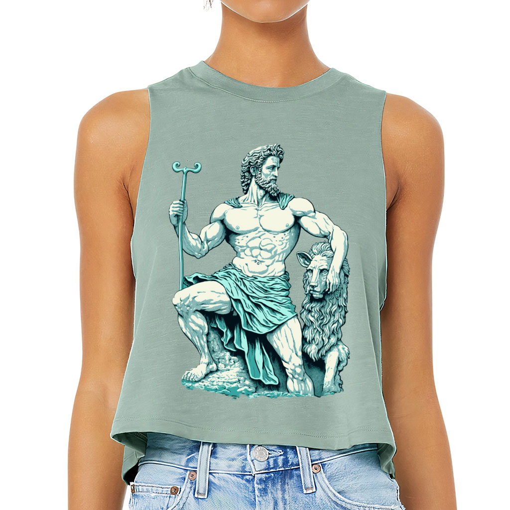 Greek Statue Racerback Cropped Tank is made of high-quality materials. 52/48 Airlume combed and ring-spun cotton/polyester jersey. Athletic Heather is 90/10 Airlume combed and ring-spun cotton/polyester jersey.