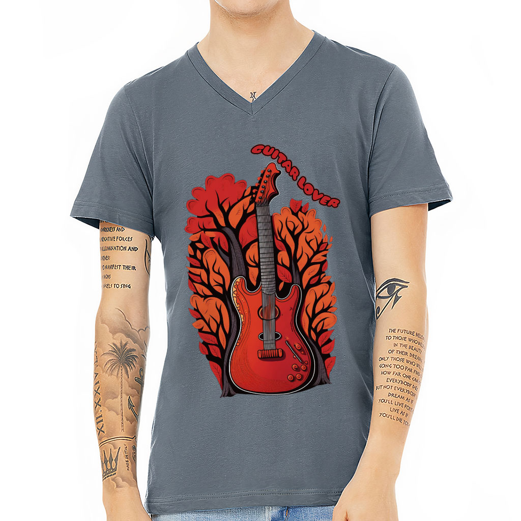 Guitar Lover V-Neck T-Shirt is proudly made with 7x less water than average manufacturers, in recycle-friendly facilities that also guarantee zero sweatshop conditions.