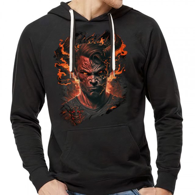 Anger Feelings Lightweight Jersey Hoodie – Head on Fire Hooded Pullover – Fantasy Hoodie