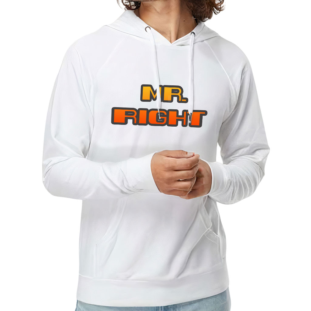 Mr Right Lightweight Jersey Hoodie – Handsome Man Hooded Pullover – Man Quotes Hoodie