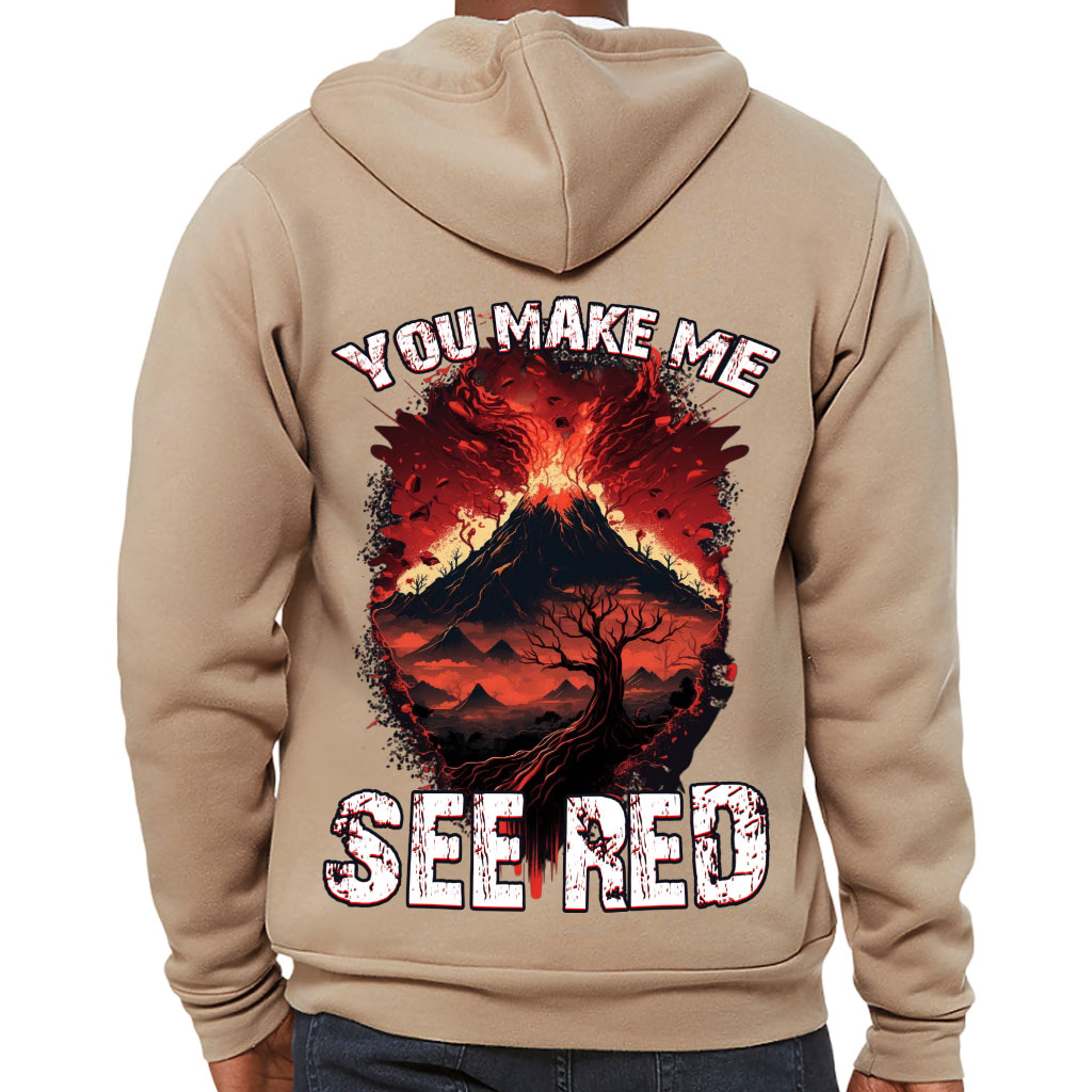 See Red Full-Zip Hoodie – Volcano Hooded Sweatshirt – Angry Quotes Hoodie