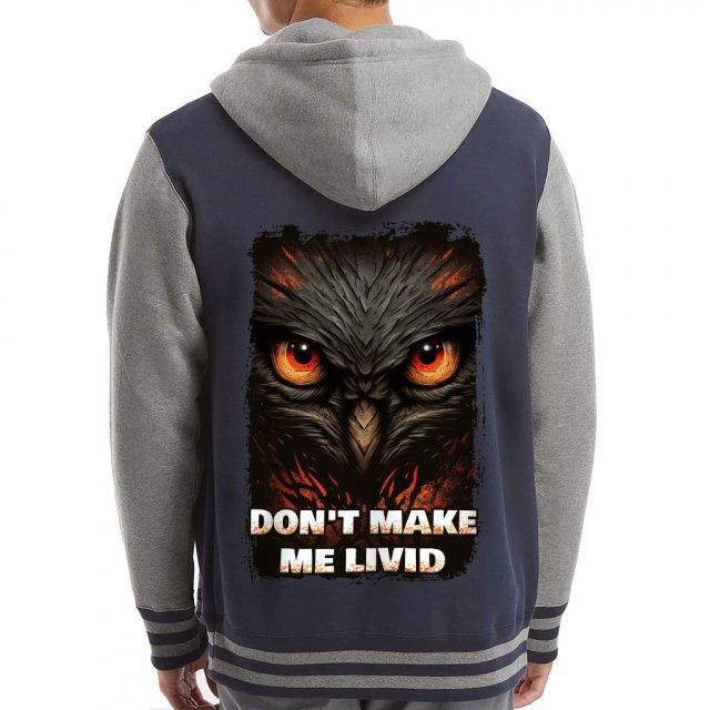 Angry Owl Varsity Hoodie – Cool Owl Zip Hoodie – Owl Print Hooded Sweatshirt