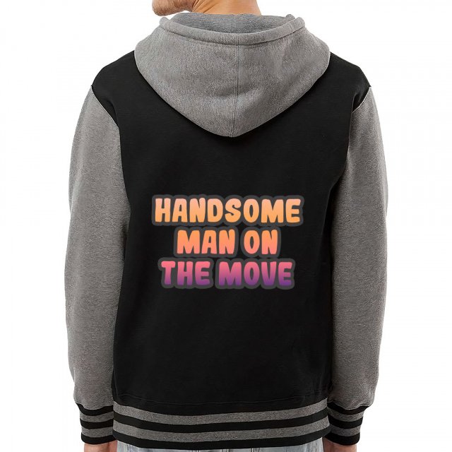 Handsome Man Varsity Hoodie – Man on the Move Zip Hoodie – Funny Quotes Hooded Sweatshirt