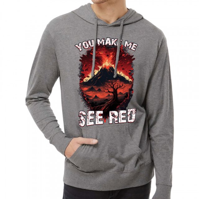 See Red Lightweight Jersey Hoodie – Volcano Hooded Pullover – Angry Quotes Hoodie