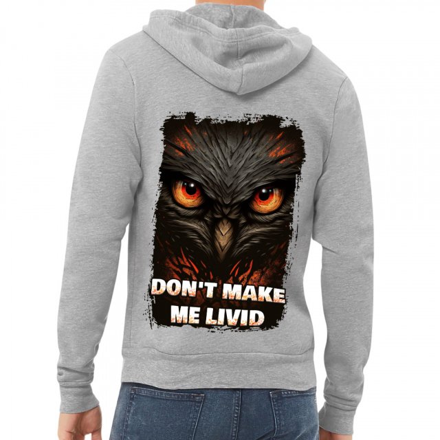 Angry Owl Full-Zip Hoodie – Cool Owl Hooded Sweatshirt – Owl Print Hoodie