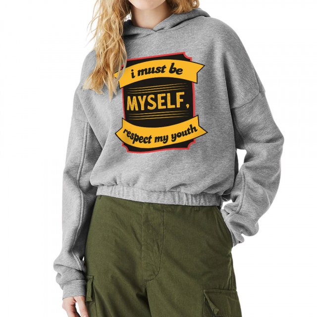 Be Myself Cinched Bottom Hoodie – Love Yourself Women’s Hoodie – Quote Design Hooded Sweatshirt