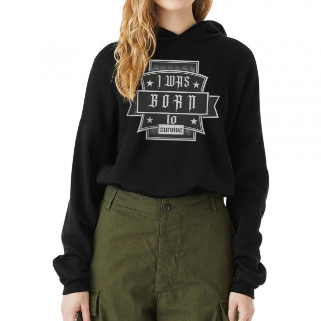 I Was Born to Survive Cinched Bottom Hoodie – Self Love Women’s Hoodie – Printed Hooded Sweatshirt