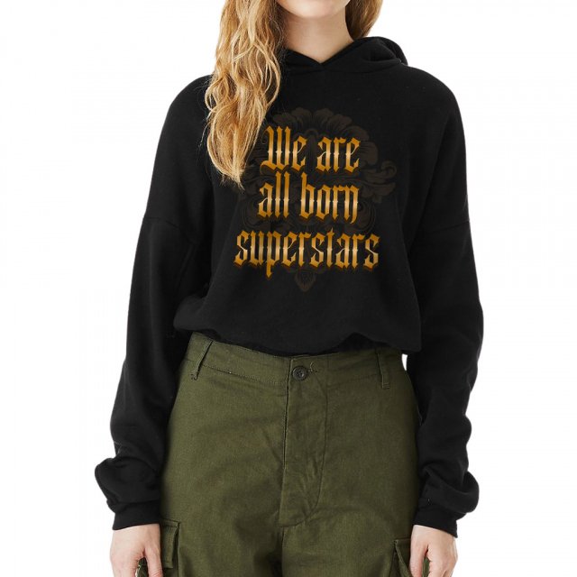 We Are All Born Superstars Cinched Bottom Hoodie – Motivational Women’s Hoodie – Self Love Hooded Sweatshirt