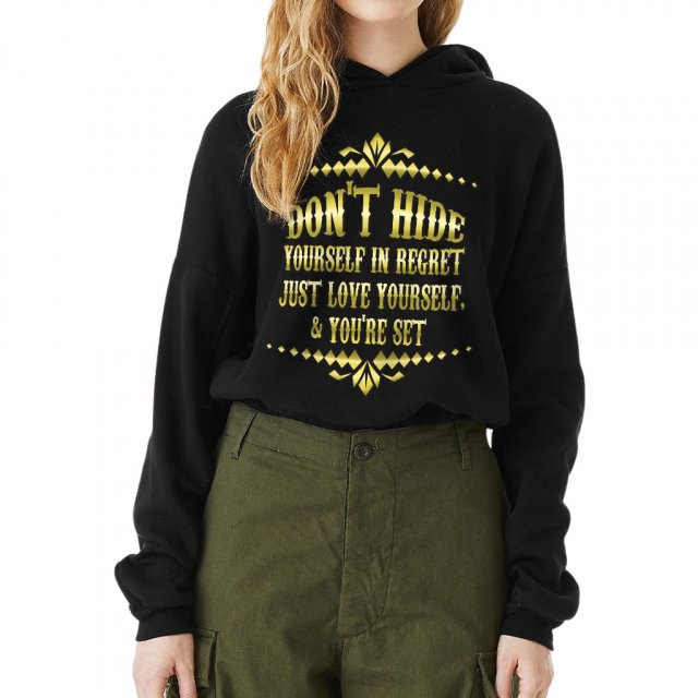 Just Love Yourself and You’re Set Cinched Bottom Hoodie – Motivational Women’s Hoodie – Life Quotes Hooded Sweatshirt