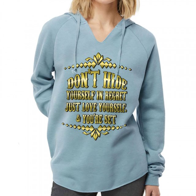 Just Love Yourself and You’re Set California Wave Wash Hoodie – Motivational Hooded Sweatshirt – Life Quotes Hoodie