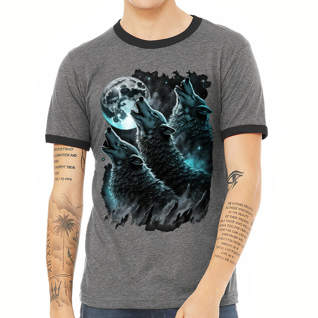 This trendy T-Shirt for men is made of a lightweight and soft cotton-poly blend, breathable and comfortable to wear. Howling at the Moon Ringer T-Shirt will give you an excellent wearing experience all day.