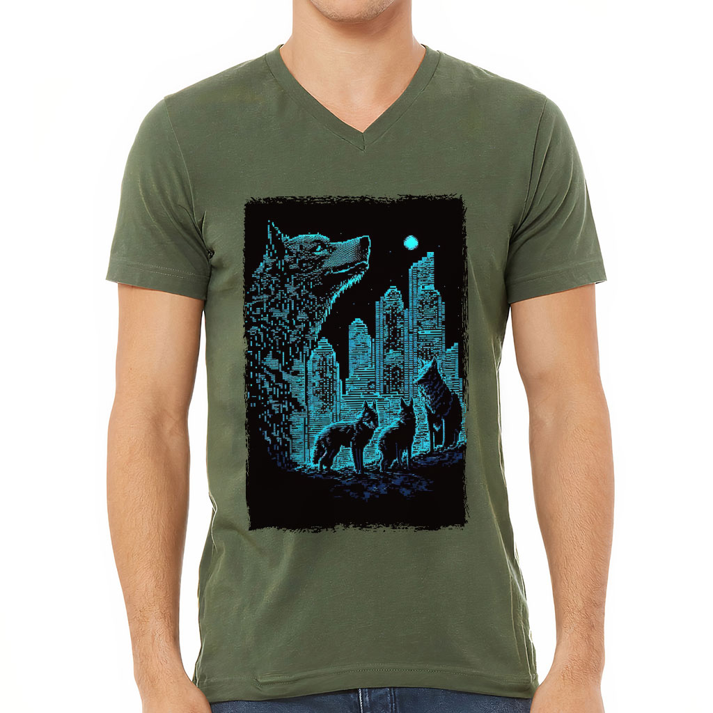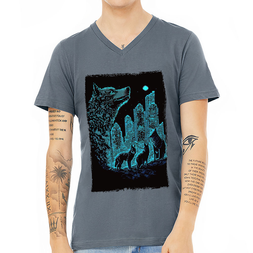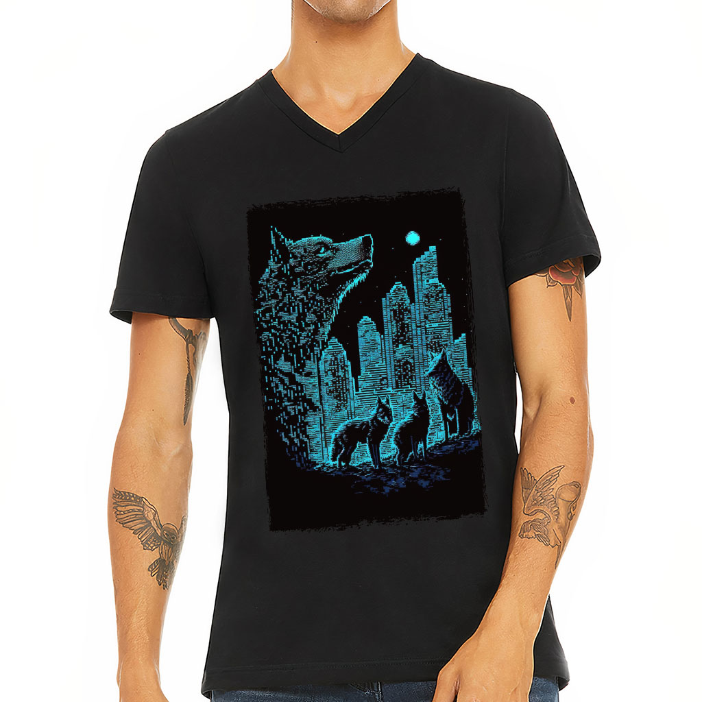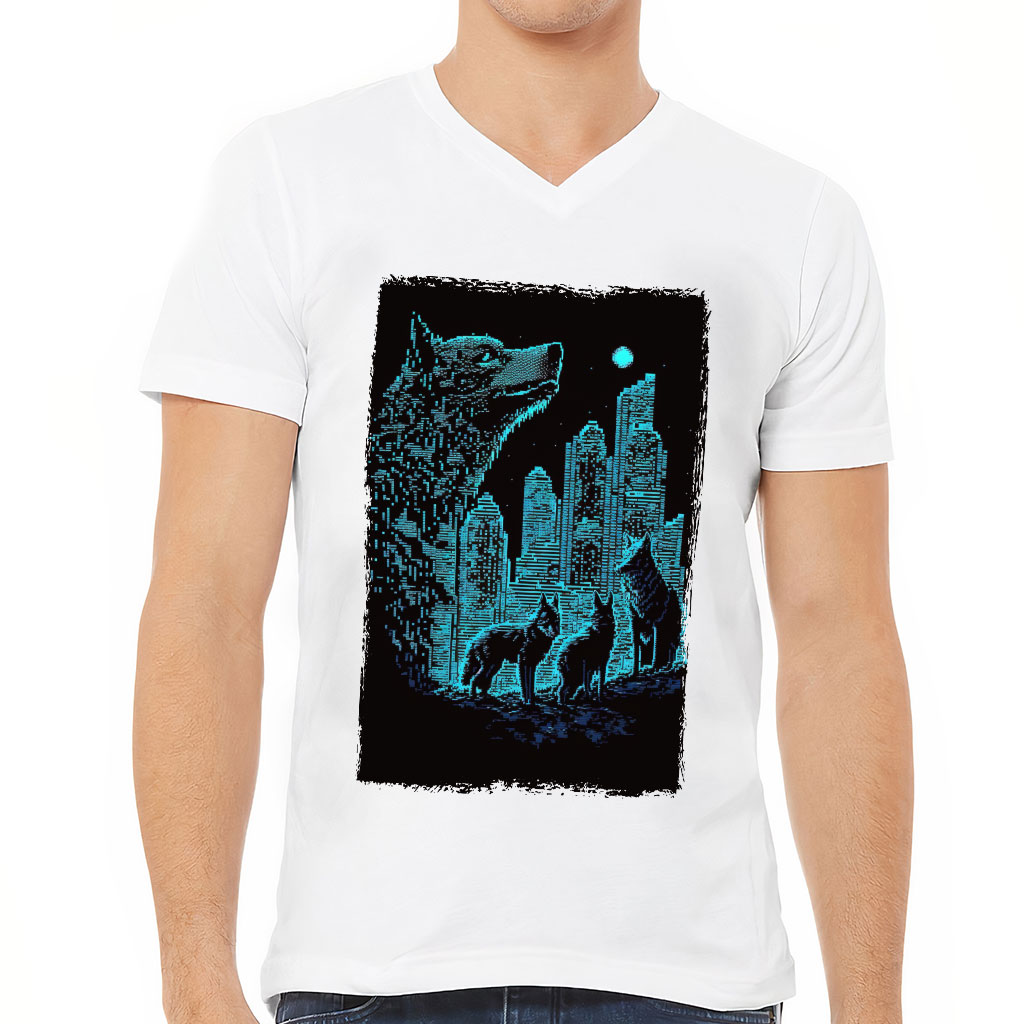 Howling Wolf V-Neck T-Shirt – Blue Moon T-Shirt – Printed V-Neck Tee