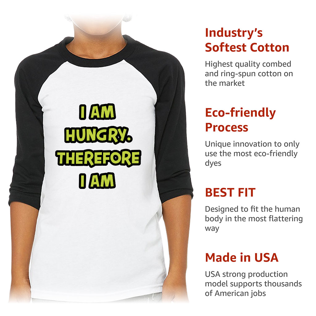 I Am Hungry Kids’ Baseball T-Shirt is made from a comfortable cotton blend that keeps them looking and feeling cool all day long. A favorite piece that looks great on everyone and with everything; this baseball tee is essential for any child’s wardrobe.
