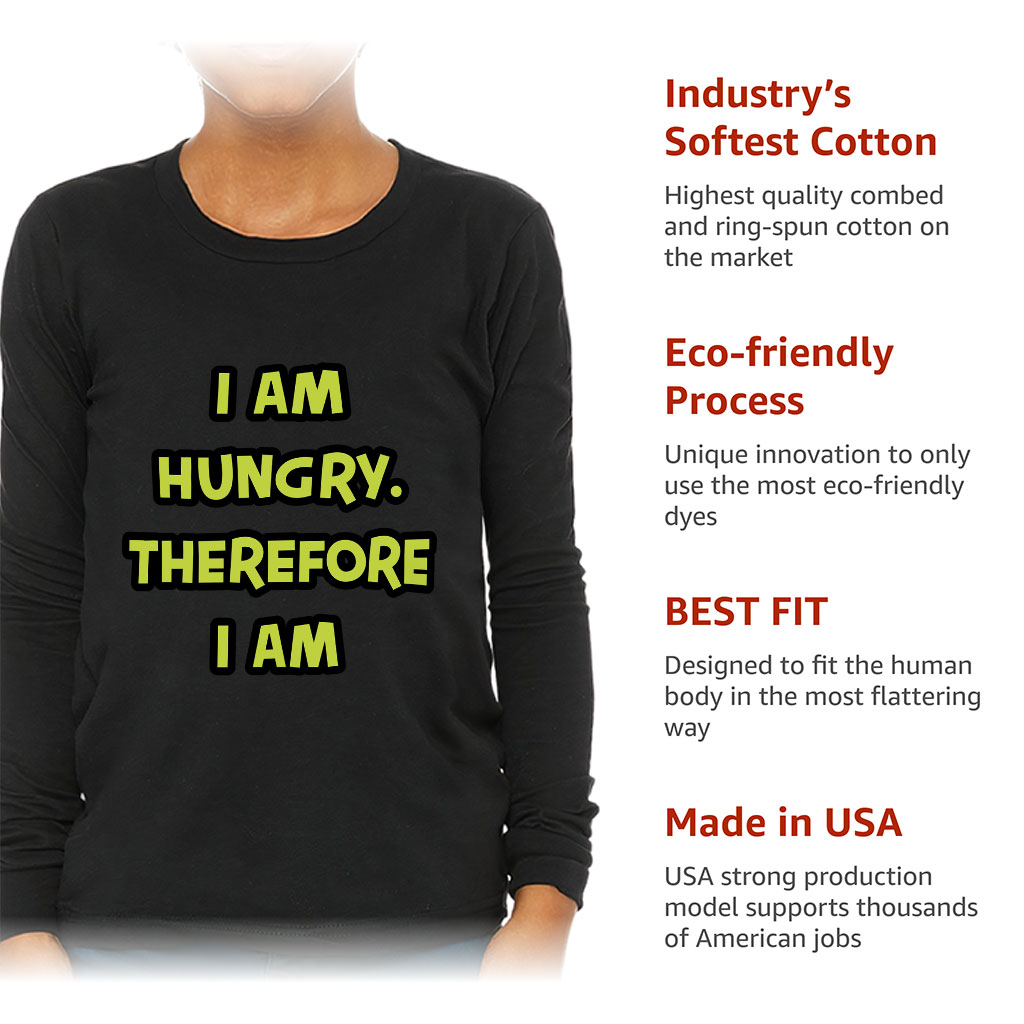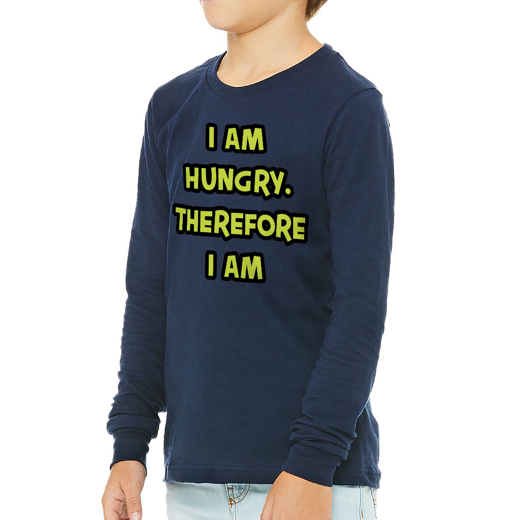 I Am Hungry Kids’ Long Sleeve T-Shirt – Food Quotes T-Shirt – Printed Long Sleeve Tee