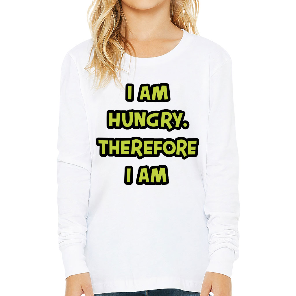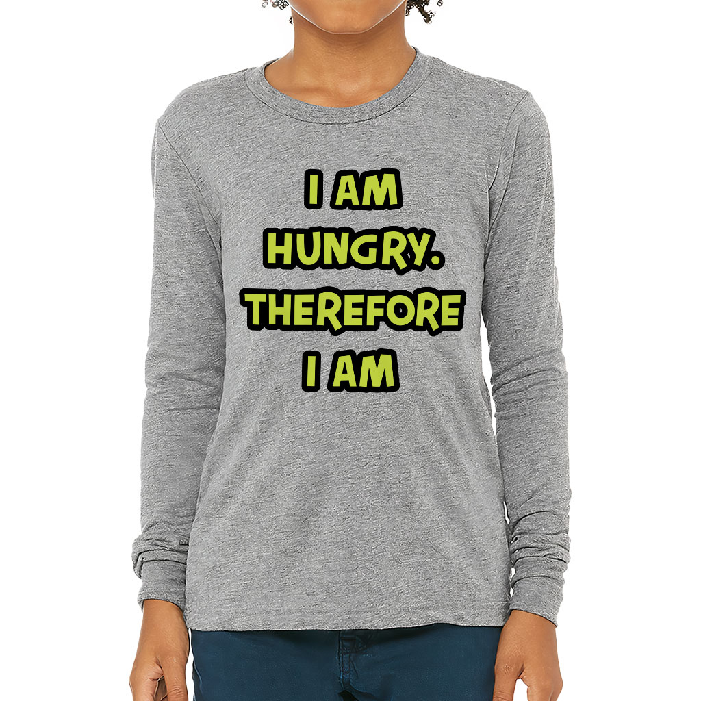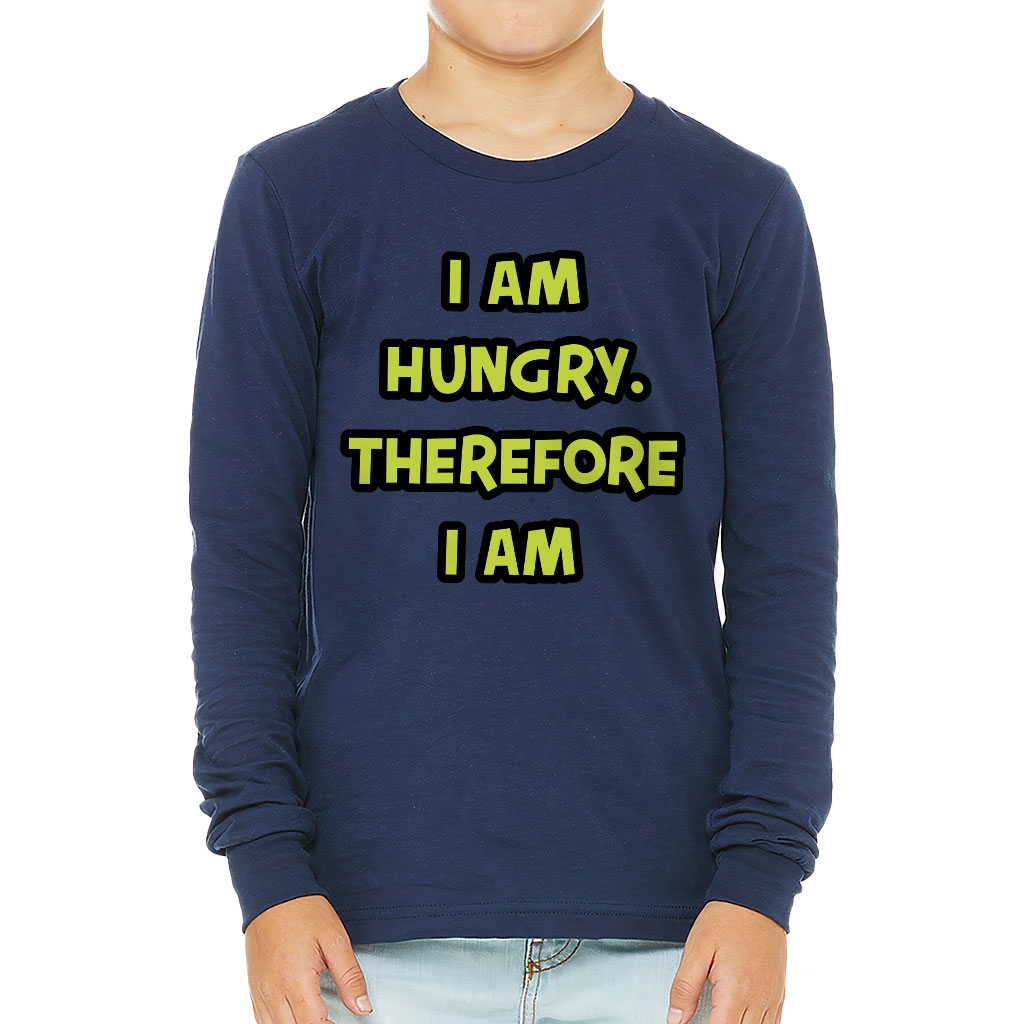I Am Hungry Kids’ Long Sleeve T-Shirt – Food Quotes T-Shirt – Printed Long Sleeve Tee