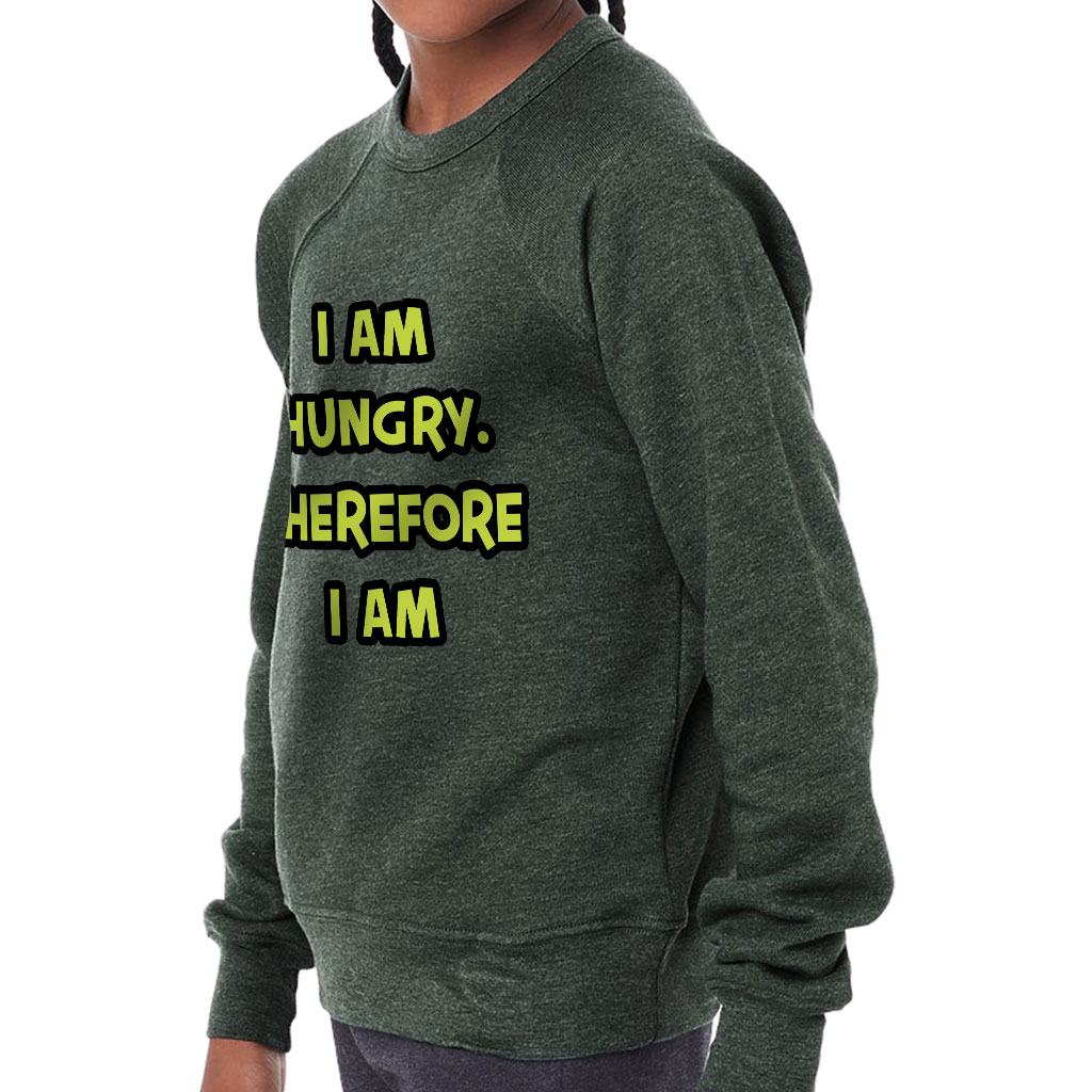 I Am Hungry Kids’ Raglan Sweatshirt – Food Quotes Sponge Fleece Sweatshirt – Printed Sweatshirt