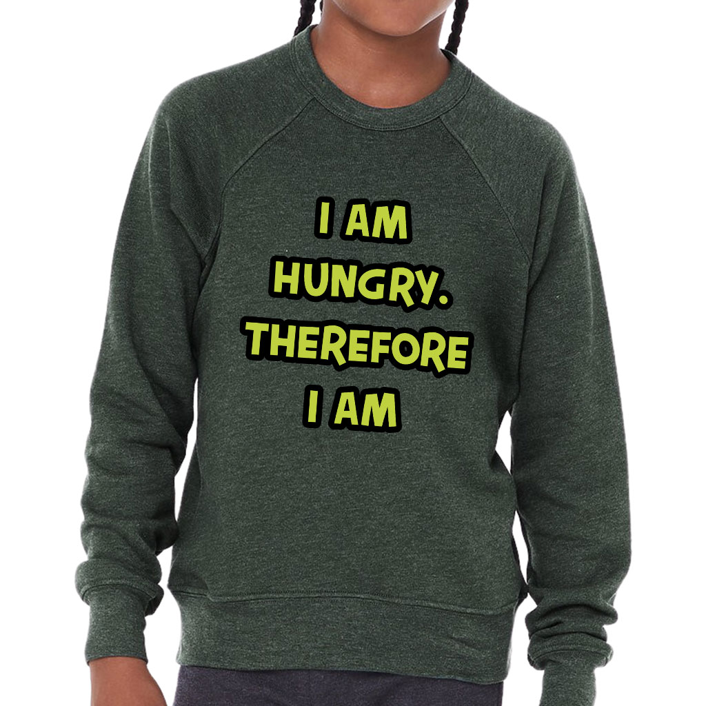 I Am Hungry Kids’ Raglan Sweatshirt – Food Quotes Sponge Fleece Sweatshirt – Printed Sweatshirt